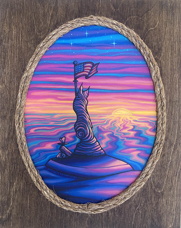 Ashley Keene is a mixed media visual artist and designer from Dana Point, California. Growing up near the beach, her artwork has been heavily influenced by the local surf culture and ocean vistas, inspiring an array of bright colors that give her artwork a surreal and dreamlike ambiance.